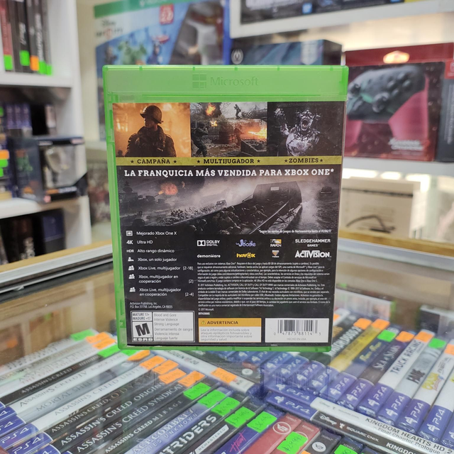 Call of Duty®: WWII acerca la experiencia de la II Guerra Mundial con tres modos de juego: campaña, multijugador y zombis. La campaña y sus gráficos trasladan a los jugadores al teatro europeo. El multijugador vuelve al juego terrestre clásico de Call of Duty. Las armas y la acción de los tiroteos rápidos te sumergirán en una amplia variedad de ubicaciones basadas en la II Guerra Mundial.