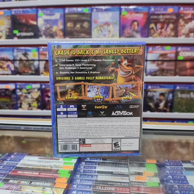¡Juega a Crash Bandicoot™ donde quieras!¡Vuelve Crash Bandicoot™, tu marsupial favorito! Mejorado, embelesado y listo para bailar con la colección de juegos N. Sane Trilogy. Ahora puedes disfrutar de Crash Bandicoot como nunca antes. Gira, salta, rompe, enfréntate a los épicos desafíos y vive las aventuras de los tres juegos con los que empezó todo: Crash Bandicoot™, Crash Bandicoot™ 2: Cortex Strikes Back y Crash Bandicoot™ 3: Warped. ¡Vuelve a vivir tus momentos favoritos de Crash con gráficos remasterizados y prepárate para disfrutar a tope!
