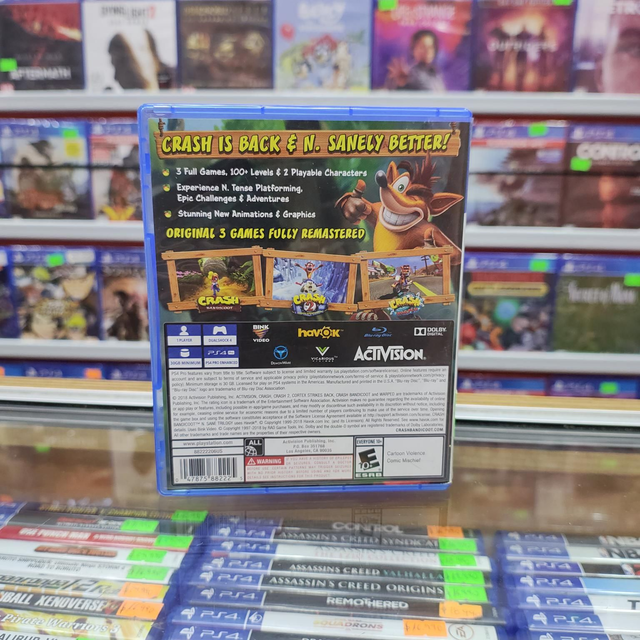 ¡Juega a Crash Bandicoot™ donde quieras!¡Vuelve Crash Bandicoot™, tu marsupial favorito! Mejorado, embelesado y listo para bailar con la colección de juegos N. Sane Trilogy. Ahora puedes disfrutar de Crash Bandicoot como nunca antes. Gira, salta, rompe, enfréntate a los épicos desafíos y vive las aventuras de los tres juegos con los que empezó todo: Crash Bandicoot™, Crash Bandicoot™ 2: Cortex Strikes Back y Crash Bandicoot™ 3: Warped. ¡Vuelve a vivir tus momentos favoritos de Crash con gráficos remasterizados y prepárate para disfrutar a tope!