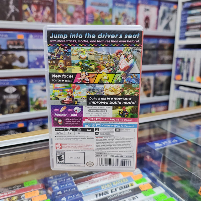 ¡Acelera a través de las pistas del Reino Champiñón bajo el agua, en el cielo, de cabeza y sin gravedad, y llega a la meta para obtener la victoria! Prepara motores en el modo multijugador local*, en los torneos en línea** del juego, en el modo batalla que ha sido mejorado ¡y más!
